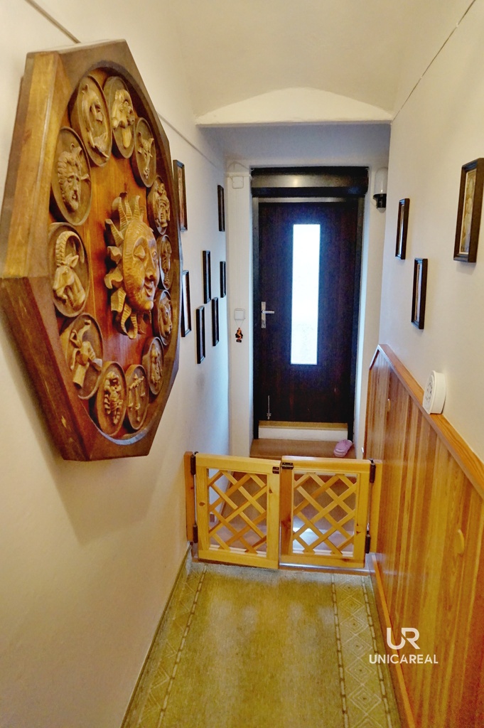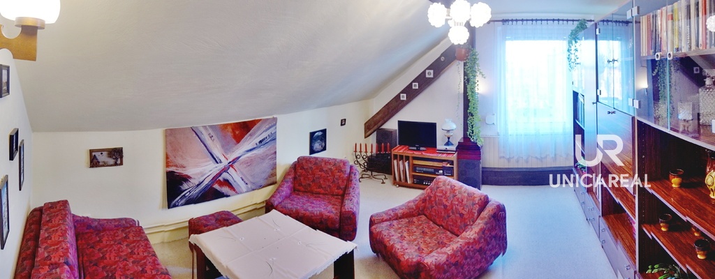 Vstupy do domu: východní z ulice, nebo západní přes zahradu. Současná dispozice sestává ze 3 podlaží. 1. suterénní se vstupem na zahradu – ložnice s pěkným výhledem na zahradu, 2x koupelna, 2x WC. V jedné s koupelen, která slouží hlavně jako technická místnost je umístěn samostatný plynový kotel, kterým je vytápěn celý dům. 2. NP: vstupní chodba, kuchyně s jídelnou, velký obývací pokoj a WC. Ve 2. NP se také nachází terasa s výhledem na zahradu. 3. NP: dvě útulné ložnice, široká chodba se skříněmi a pracovnou. V šikmině je zbudovaný další úložný prostor. Velkou výhodou je i to, že po dohodě s majiteli je možné v případě zájmu ponechat v RD téměř všechny kusy nábytku, které by již byly zahrnuty v kupní ceně.