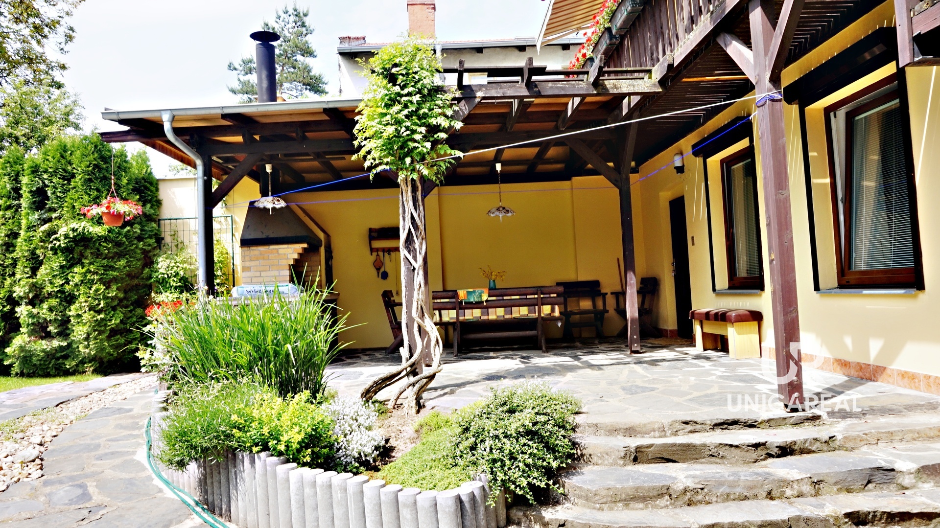 Dům prošel postupnou a kompletní rekonstrukcí. Je dobře technicky řešen i s ohledem na odolnost vůči venkovním vlivům. Všechna plastová okna v domě jsou pětikomorová s bezpečnostními trojskly. Na všech dveřích i oknech jsou namontované pro lepší bezpečnost a lepší udržení tepla venkovní elektrické rolety. Obě prostorné garáže s dílnou (jedna do ulice, druhá do zahrady) mají elektrická shrnovací vrata na čip. Na velmi pěkné, západně orientováné zahradě s okrasnými dřevinami a vlastní studnou (využívaná na zahradní činnost) je zbudovaná nákladná a stylová pergola s udírnou.