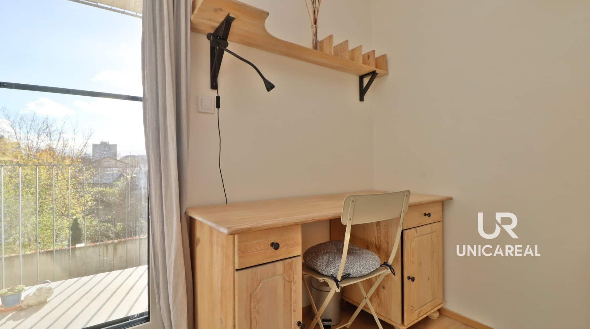 Dominantní místností je obývací pokoj s kuchyňským koutem, chytře rozdělen i na pracovní a relaxační zónu s přímým vstupem na prostorný balkon, s výhledem do klidného vnitrobloku a jižní orientací.
