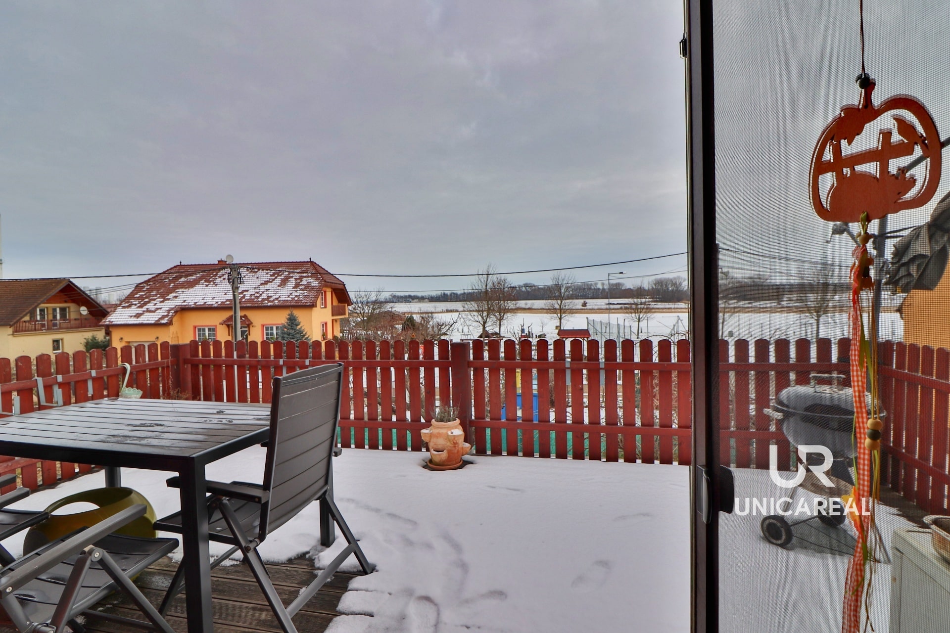 Přístup k bytu do patra je po kovovém venkovním schodišti. Možnost venkovního posezení i ve společných prostorech dvora u domu.
