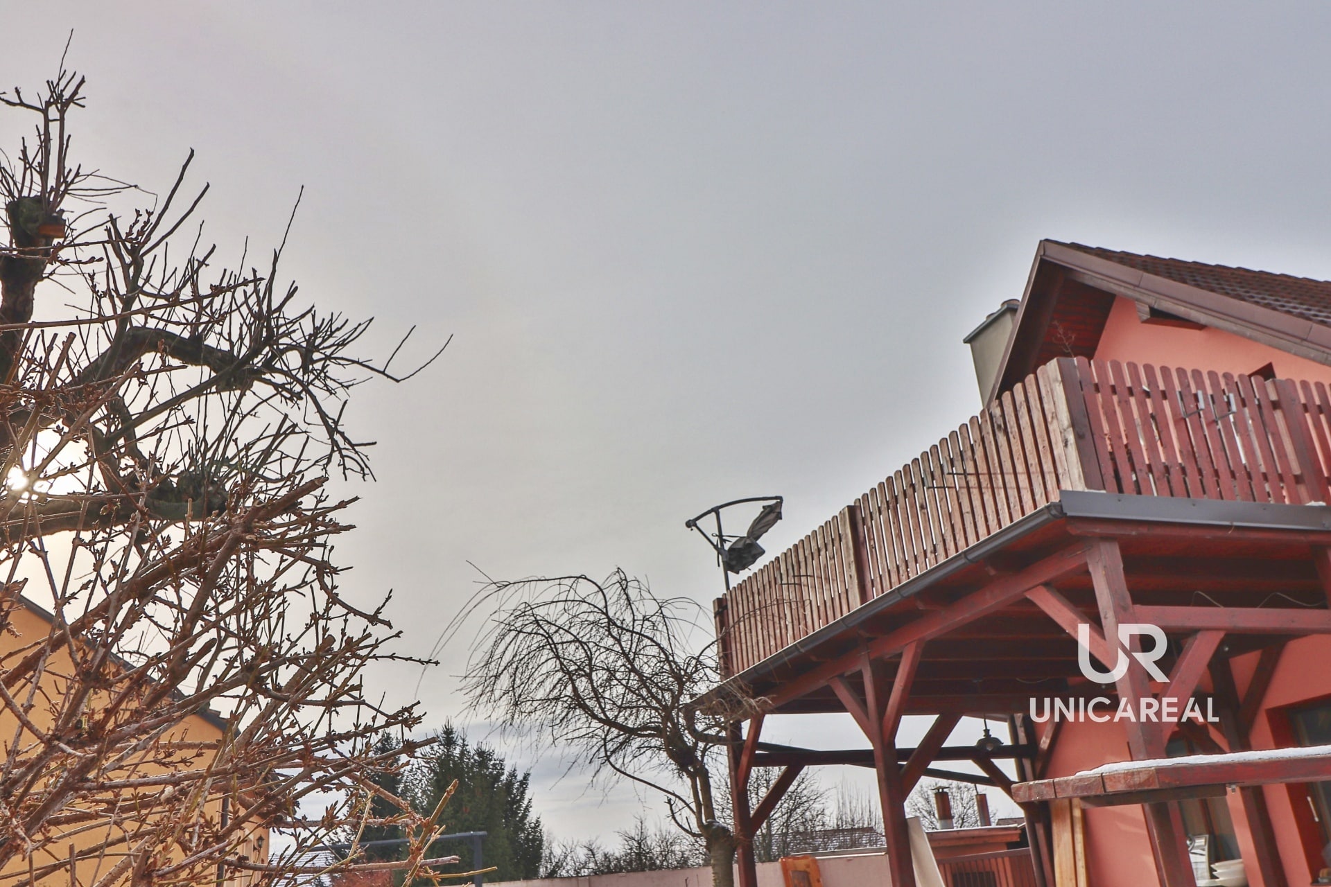 Přístup k bytu do patra je po kovovém venkovním schodišti. Možnost venkovního posezení i ve společných prostorech dvora u domu.