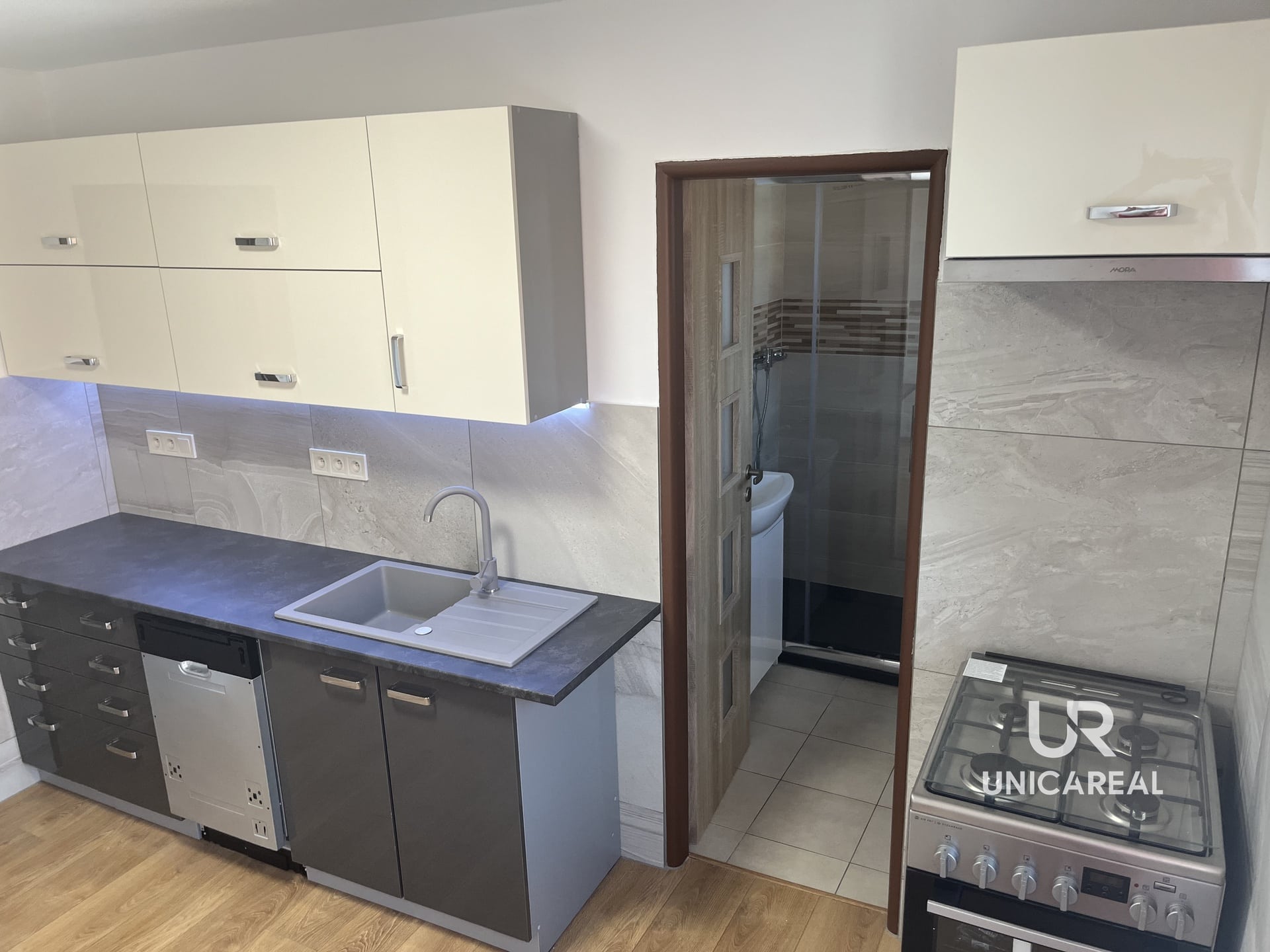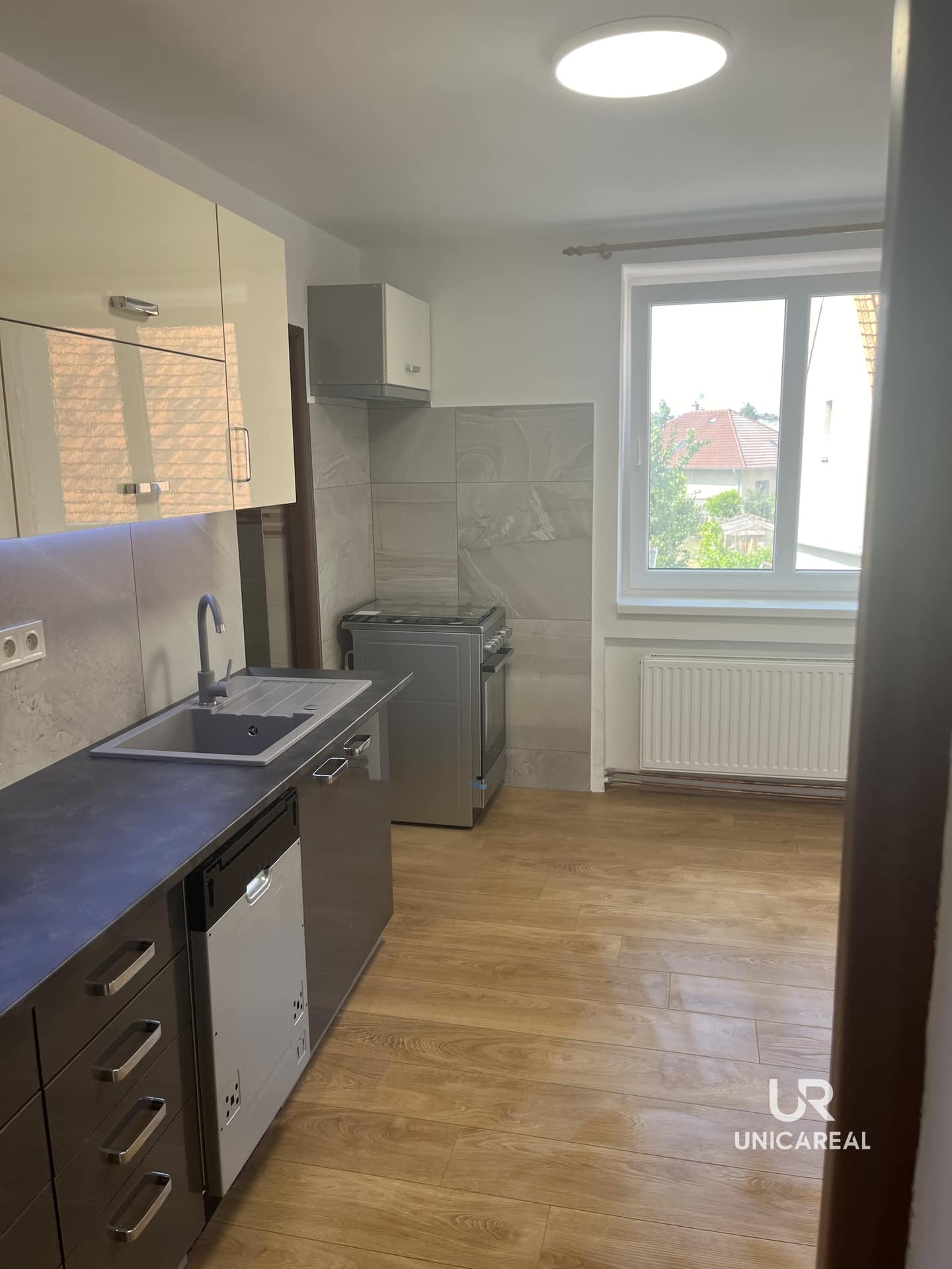 Dispozičně je tvořen kuchyní s novou kuchyňskou linkou vybavenou spotřebiči: digestoř, myčka a plynový sporák.
