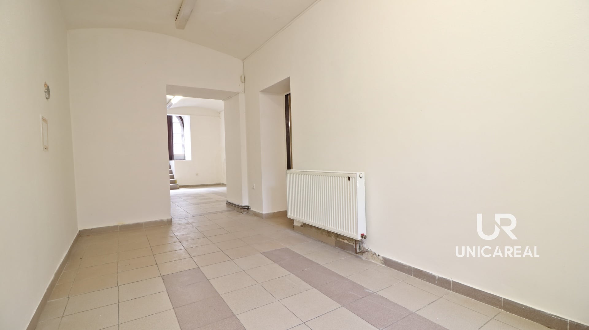 Podlahovou krytinu celého prostoru tvoří dlažba. Vytápění zajištěno centrálním plynovým kotlem v domě.
