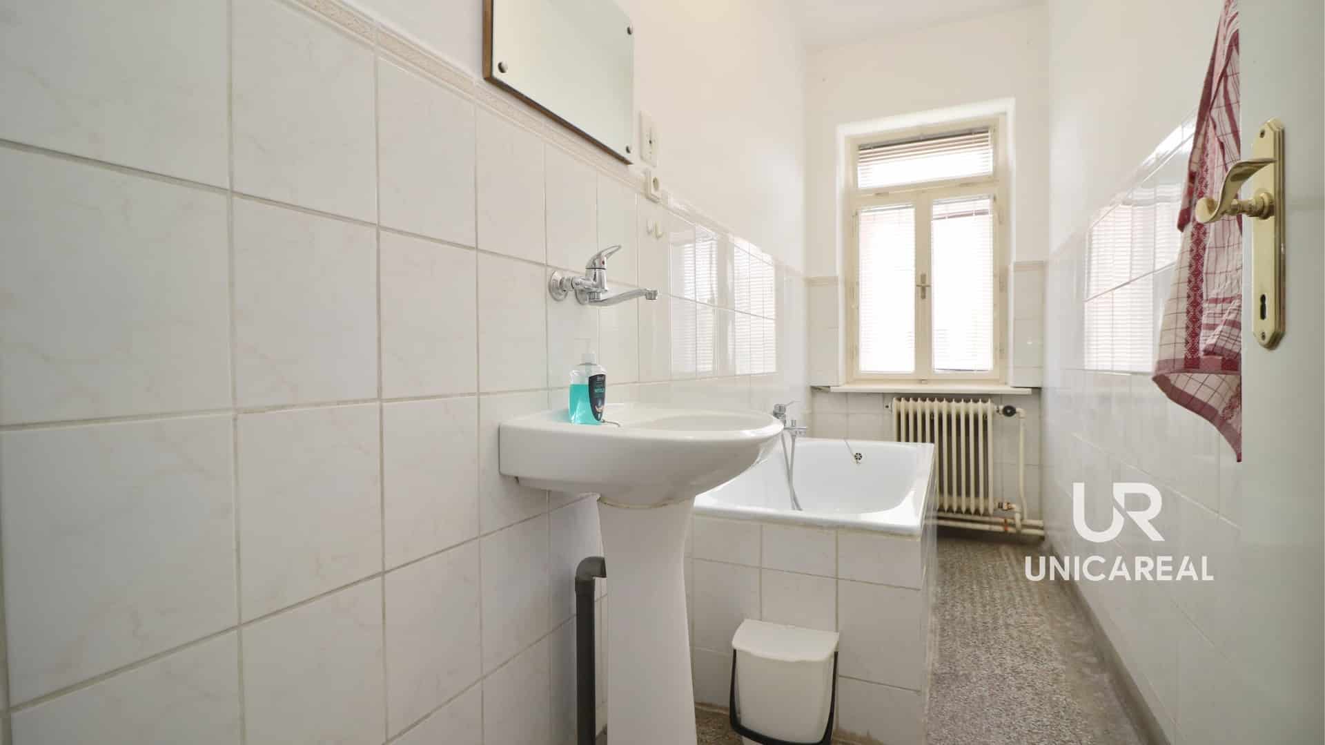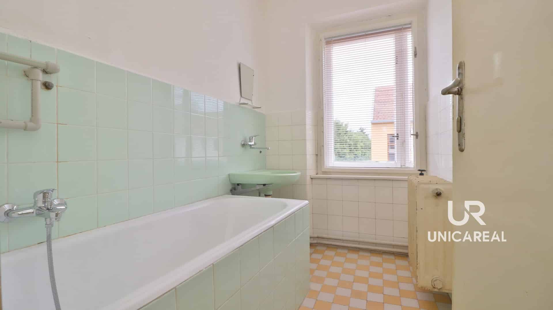 Koupelna 4,5 m2 disponuje umyvadlem a vanou. Samostatná toaleta.