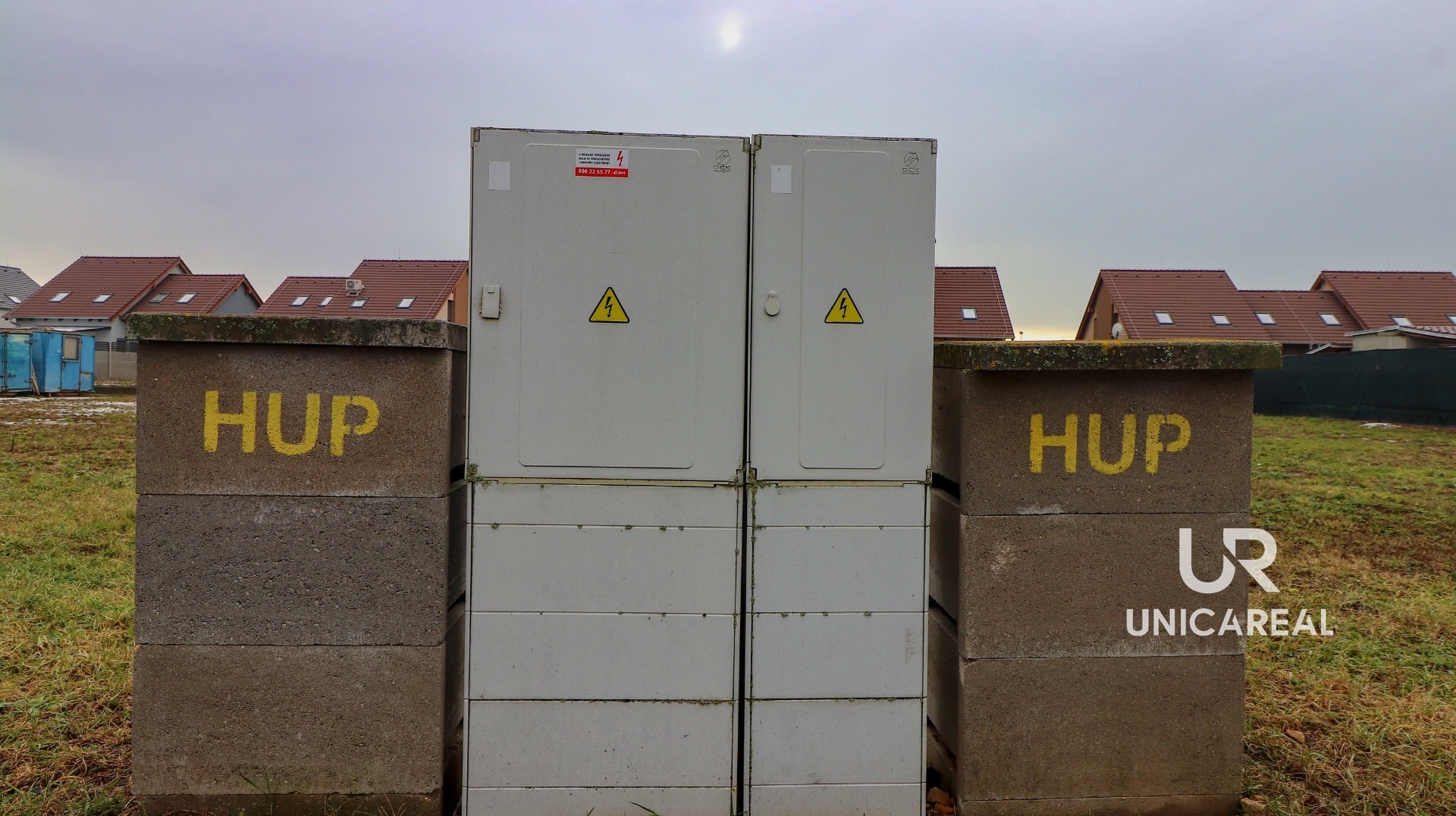 Přípojky na hranici pozemku.