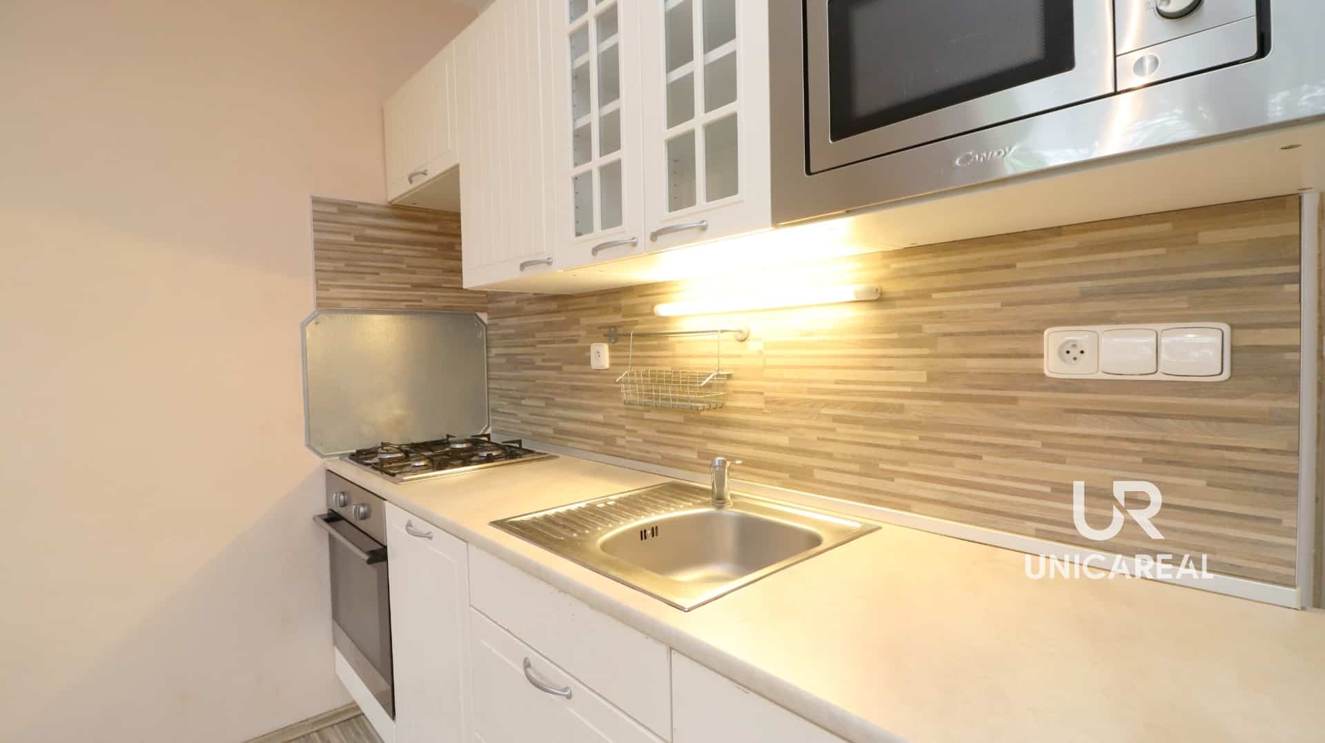 Byt situovaný v 1. NP má celkovou užitnou plochu 35 m2. Byt je částečně vybavený: kuchyňská linka, plyn. sporák, el.trouba, mikrovlnná trouba, lednice s mrazákem, pračka a zařízení koupelny. V bytě se nachází praktická šatna a WC je zvlášť. K bytu náleží sklep o velikosti 2m2.
