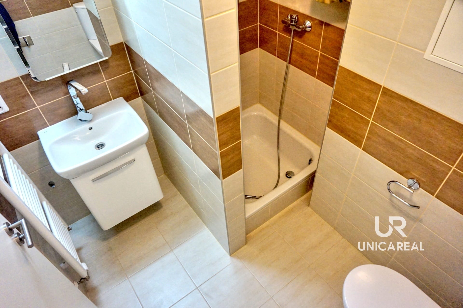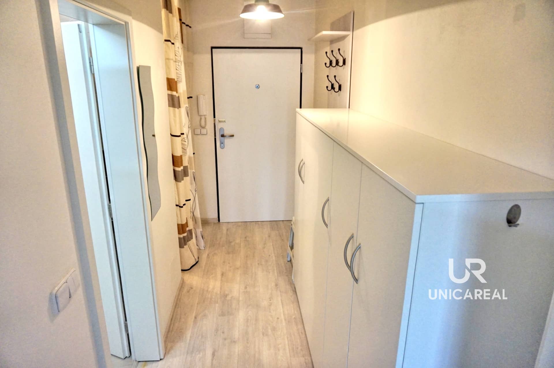 Se souhlasem majitele nabízíme k pronájmu novostavbu částečně zařízeného bytu 1+kk s balkonem, nacházející se v moderním, polyfunkčním domě Placeo, v městě Rosice na ul. Komenského nám. Přímo na náměstí ležící dům je kolaudován v roce 2017 a dostupnost do Brna je pouhých 15min. Byt situovaný ve 2.n.p s výtahem má celkovou užitnou plochu 34m2 + 5m2 balkon. Byt je částečně vybaven: Kuchyňská linka s protilinkou, sporák, nová lednice, stůl, úložná komoda v předsíni, vestavěné skříně v prostorné, praktické šatně, příslušenství koupelny. V koupelně je přípojka na pračku. Patrová postel na fotografii byla odvezena.