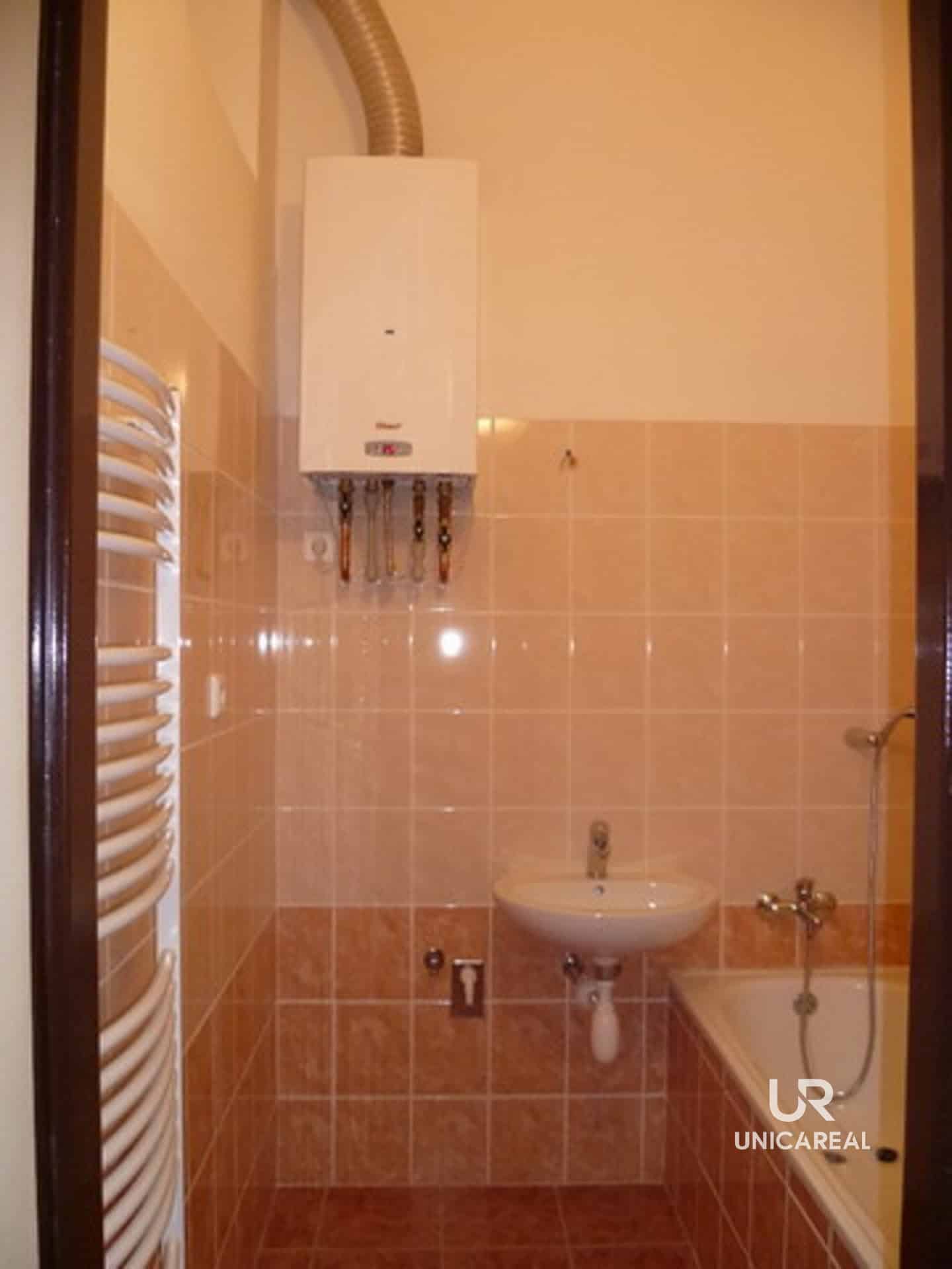 Ve vybavení bytu zůstává kuchyňská linka a plynový sporák. Vytápění bytu a ohřev vody je řešen samostatným kotlem na plyn.