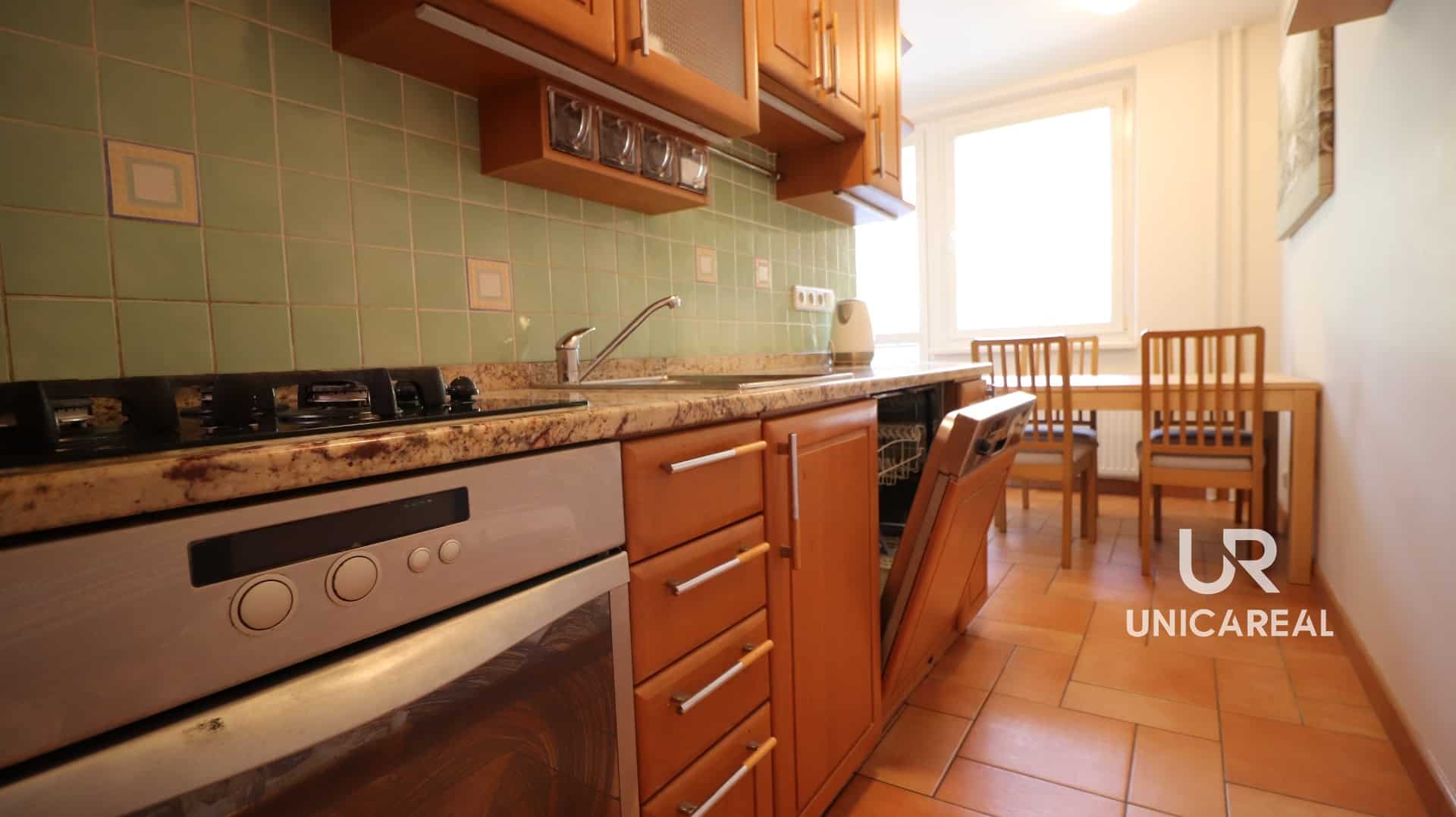 Dispozice bytu jsou – vstupní prostorná chodba , dva samostatné pokoje jeden ze vstupem na balkon, samostatná toaleta, kuchyně je vybavena linkou s plynovým sporákem a troubou, lednicí s mrazákem, myčkou nádobí a jídelním stolem se židlemi, koupelna s rohovou vanou, umyvadlem a otopným žebříkem. Z kuchyně je vstup na zasklenou lodžii. Byt je po rekonstrukci a je vybaven na míru vyrobenými úložnými prostory vč. prostorné šatní skříně , předsíňové stěny s botníkem, dále je v bytě komora.