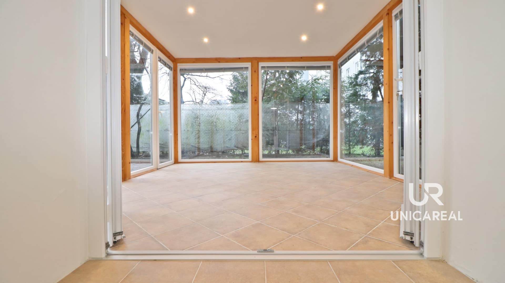 Jedná se o dispozičně unikátně řešený byt, kde ložnice je panoramatická se čtyřmi prosklenými stěnami. Z ložnice se pak vchází přímým vstupem na vlastní zahradu, která je příjemným uživatelským bonusem pro nerušený relax. Ačkoliv v těsné blízkost centra, je byt velmi klidný, protože je orientovaný do vnitrobloku. Pro lepší představu o dispozici je součástí prezentace půdorys a vizualizace