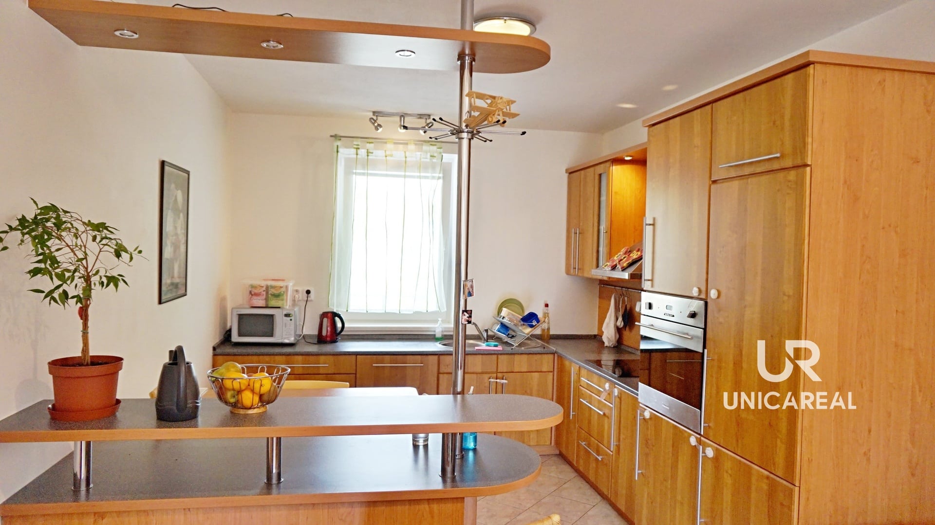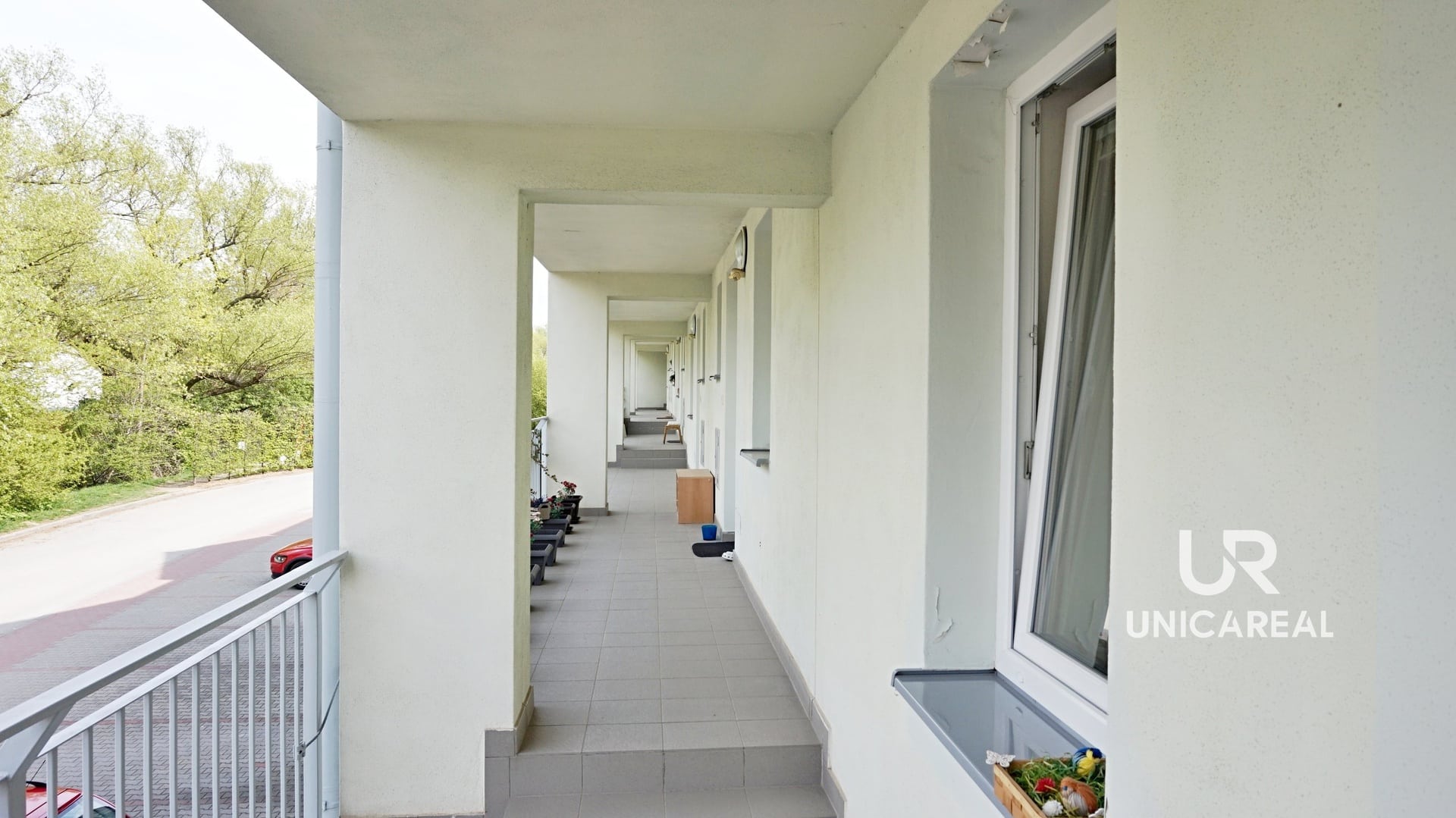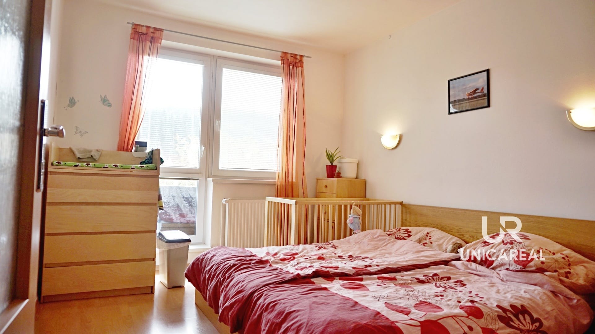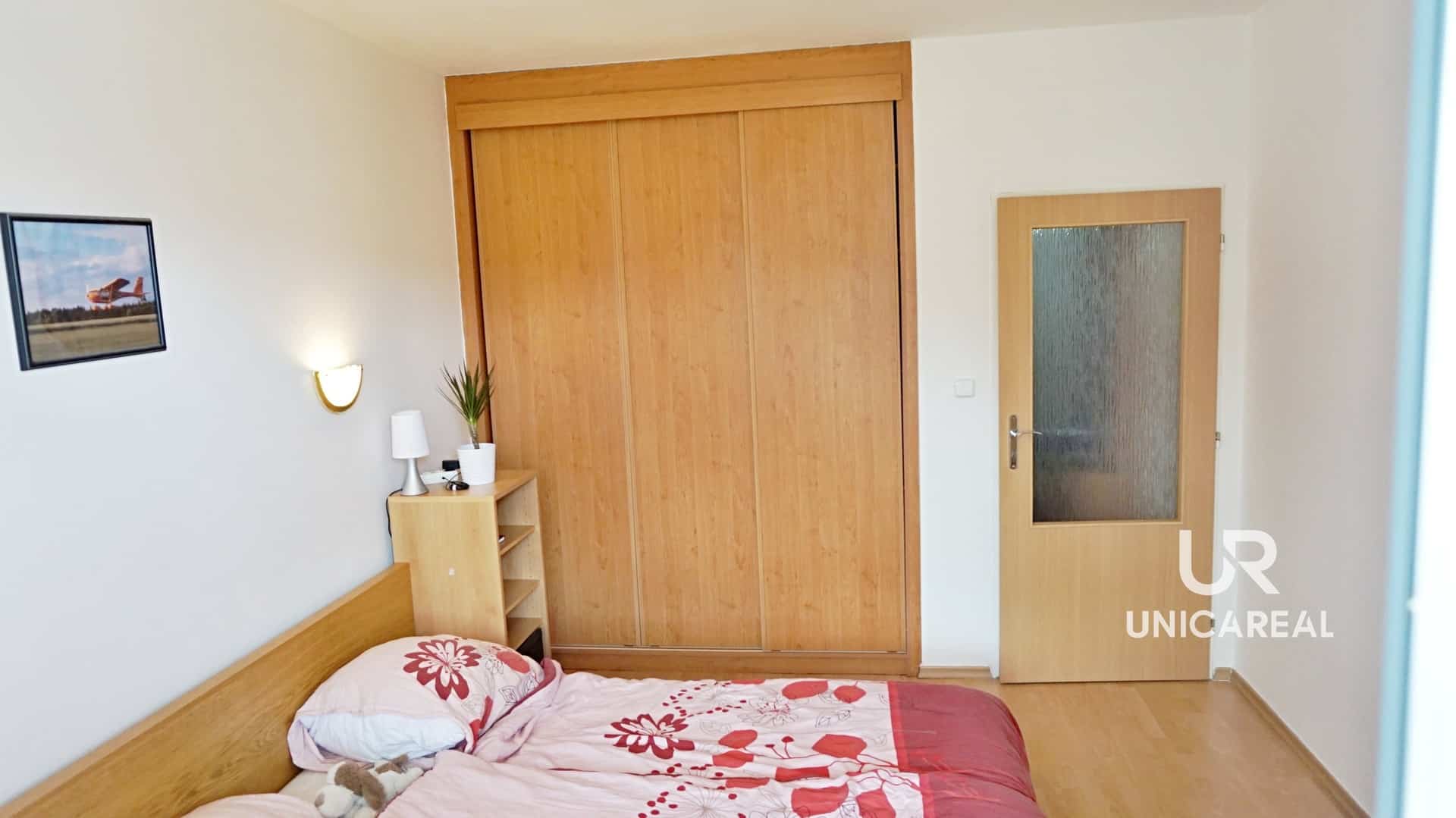 Z obývacího pokoje i ložnice je přímý vstup na západně orientovaný balkon ze kterého je příjemný, otevřený výhled do zeleně. Byt se nabízí částečně zařízen: kuch. linkou s vestavěnými spotřebiči, barovým pultem, stolem se židlemi, vestavěnou skříní v ložnicí a vestavěnou skříní umístěnou v praktické komoře. Byt je vytápěn samostatným, plynovým kombi kotlem, který je určen i na ohřev vody.
