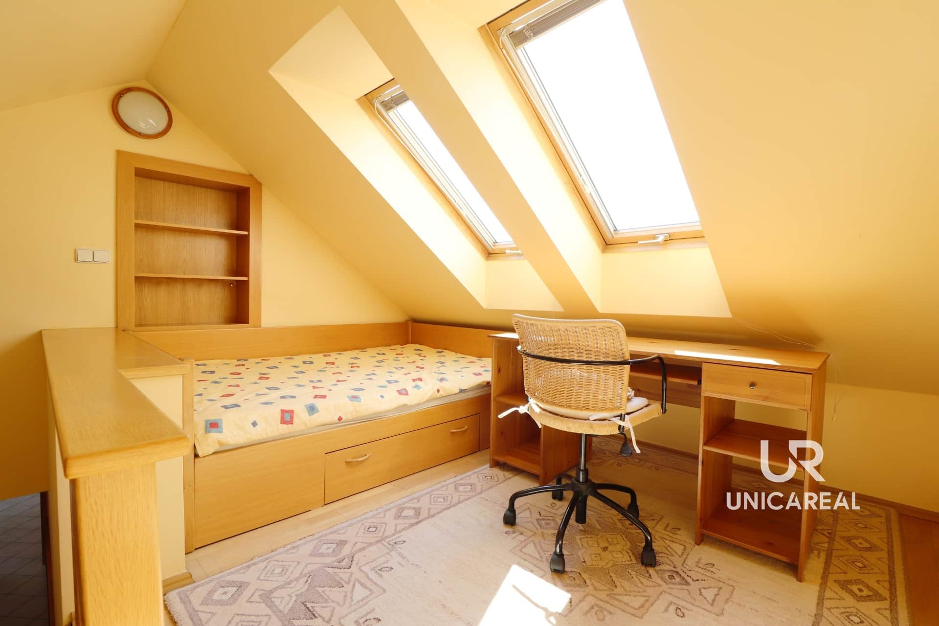 V části nad kuchyní se nachází otevřená místnost s lůžkem , který je vhodný pro případnou návštěvu, popřípadě lze místnost využít jako pracovnu. Celý byt je klimatizován.