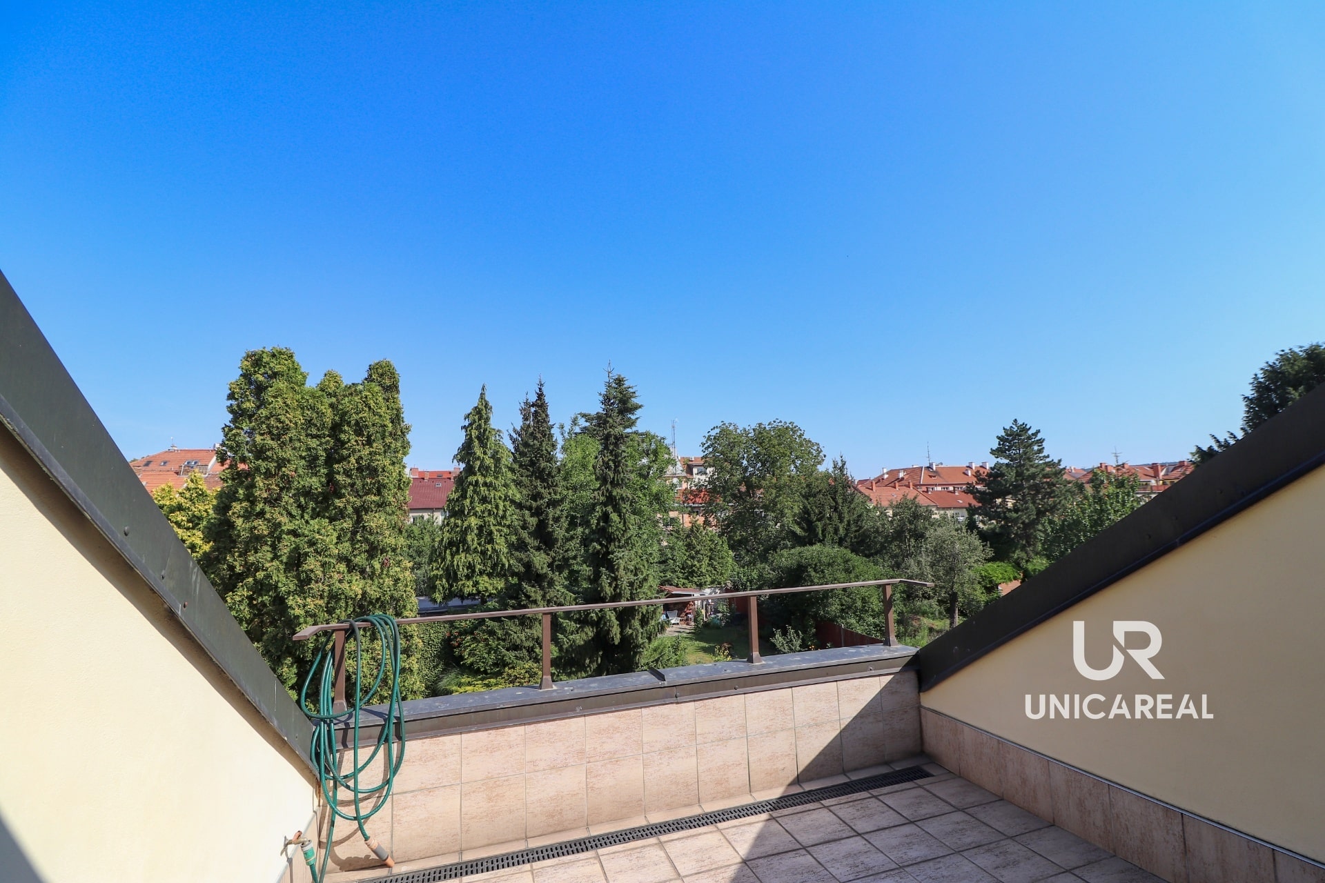 Byt se nachází ve druhém podlaží rodinného domu s podlahovou plochou 129 m2, terasou 16 m2 s posezením a krásným výhledem do vnitrobloku rodinných domů.