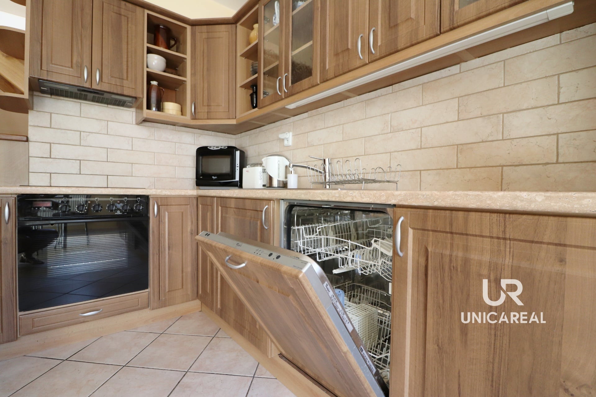 – prostorná kuchyně s veškerými funkčními spotřebiči (indukční varná deska, el. trouba, digestoř, mikrovlnka, myčka, lednička s mrazničkou, nechybí zde ani nádobí , talíře, sklenice, příbory…) , jídelní stůl se židlemi, samostatná toaleta s umyvadlem a oknem,