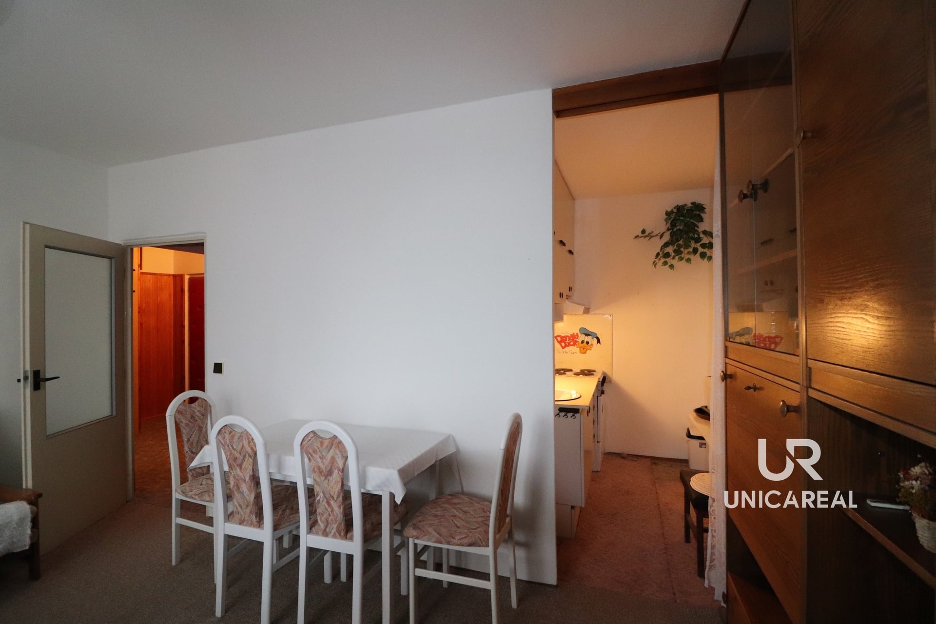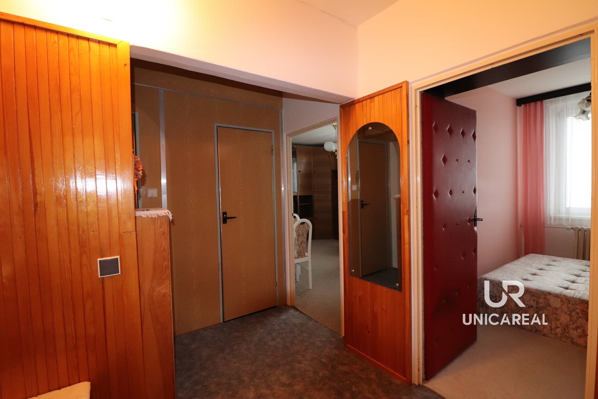 Dispozice bytu: prostorná předsíň s vestavěnými skříněmi, ložnice, obývací pokoj s kuchyňským koutem, koupelna, samostatné WC.