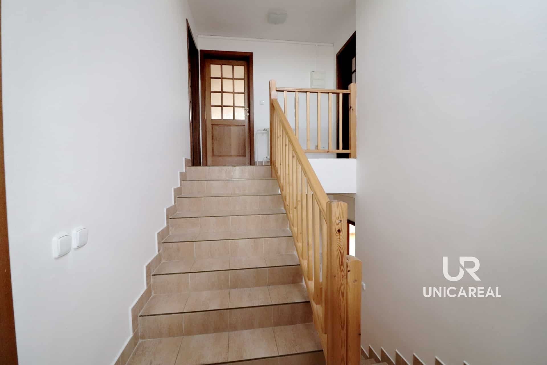 K bytu náleží i garáž. Byt je ve velmi dobrém udržovaném stavu a nabízí se jako částečně vybavený. Kuchyň 17 m2 je zařízena vkusně zvolenou kuchyňskou linkou, sporákem, digestoří a lednicí. Dominantní místností je prostorný obývací pokoj o velikosti 35 m2. Ložnice v zadní části bytu má plochu 13,6 m2 a menší pokojík 8,6 m2 je se vstupem na balkon. Ve všech místnostech je položena dlažba. Koupelna 6 m2 disponuje umyvadlem, vanou a toaletou a nachází se v mezipatře rodinného domu. K využití je také komora 1,8 m2. V přízemí rodinného domu se nachází veterinární ordinace.