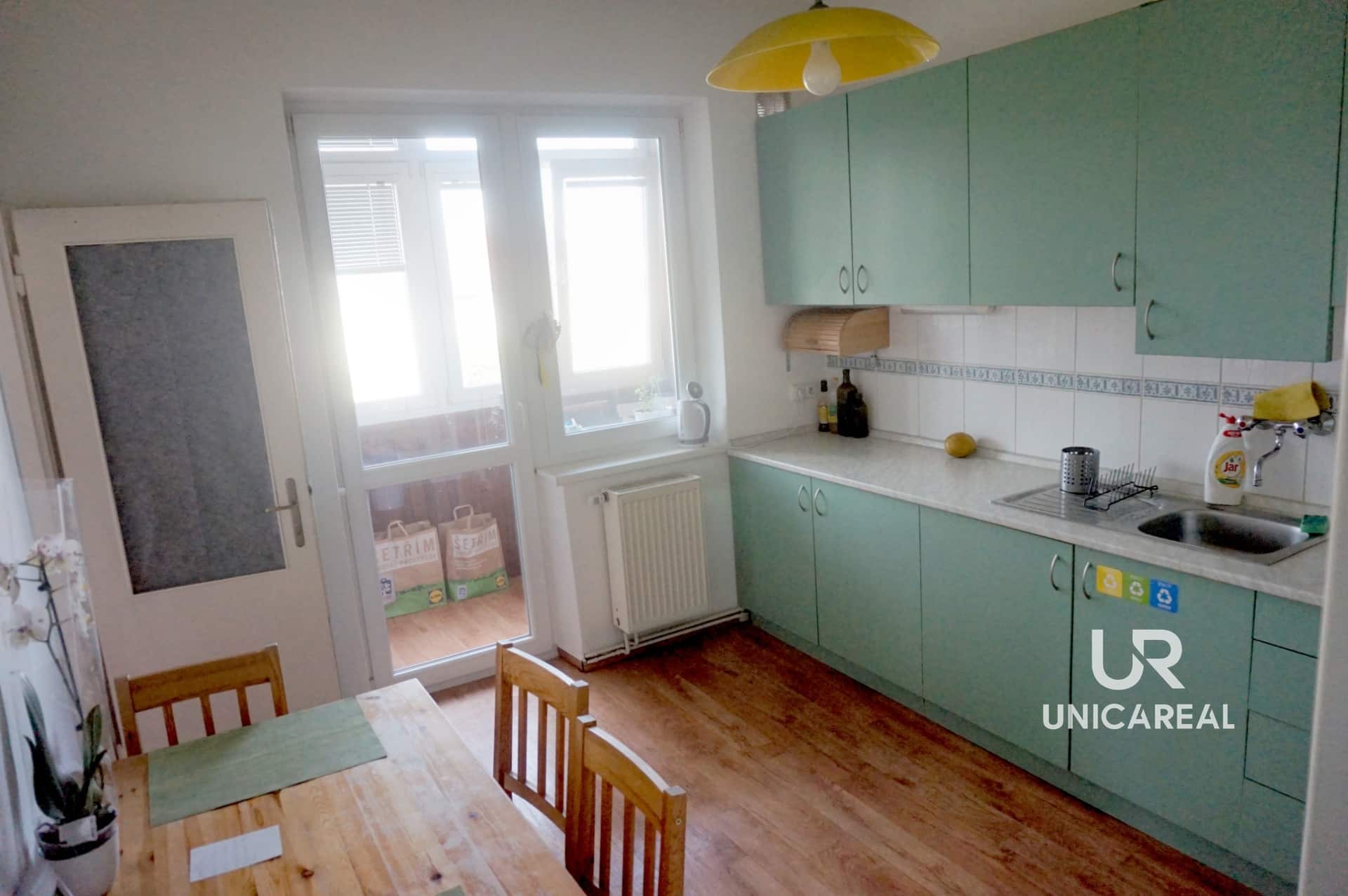 V bytě jsou dva samostatné, neprůchozí pokoje o velikosti 24m2 a 22m2 a jeden menší pokoj o velikosti 12m2, do kterého se vchází přes kuchyň. V předsíni se nachází komora. Koupelna a WC jsou zvlášť. V kuchyni je zasklená veranda s pěkným, otevřeným výhledem do zahrad ve vnitrobloku.