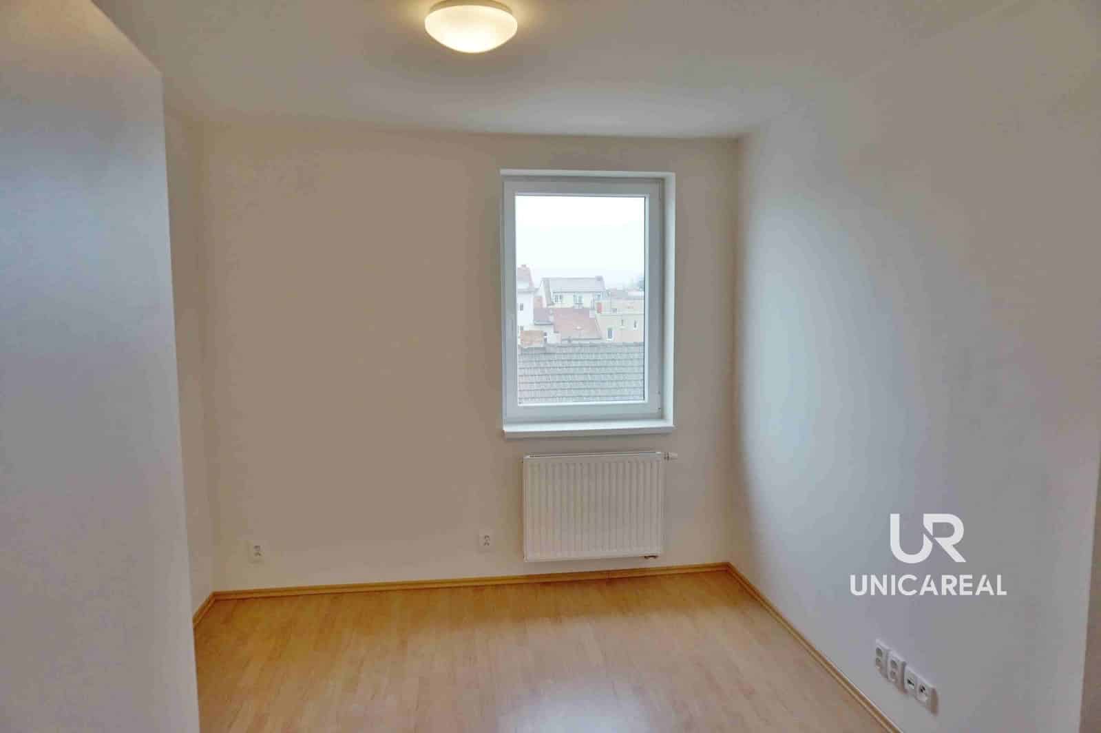 Byt se samostatnými vstupy do všech místností je situovaný ve 4 n.p domu bez výtahu a má celkovou užitnou plochu 78 m2 + balkon 3 m2 a dále možnost využití společných zděných a uzamykatelných prostor v suterénu domu vhodných k uskladnění sportovních potřeb nebo kočárku. Samostatné pokoje mají velikost 21m2,17m2,15m2 a 11m2.