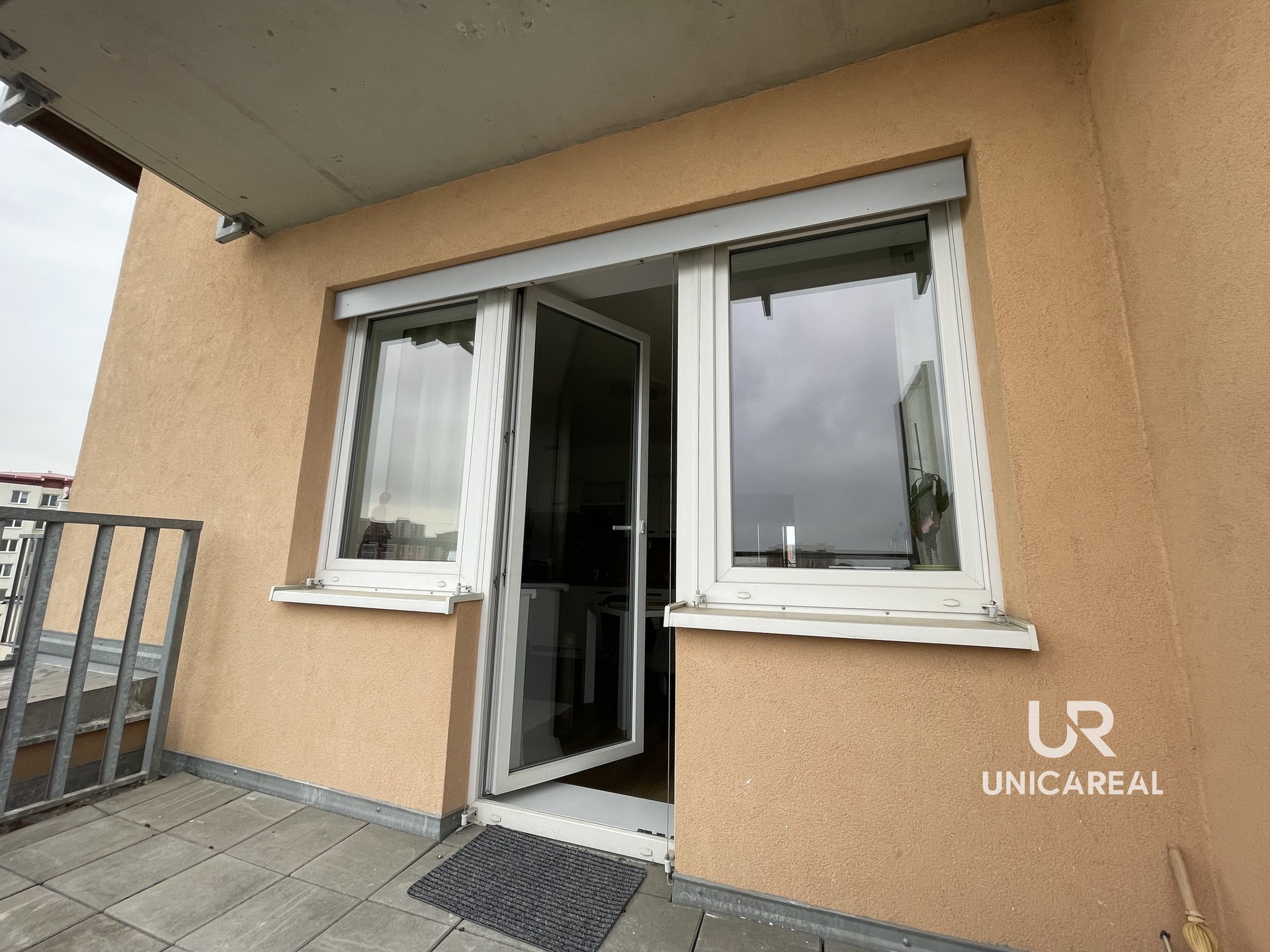 Byt situovaný v 7.n.p s výtahem má celkovou užitnou plochu 25m2 + terasa 8m2 + zděný sklep 3m2.