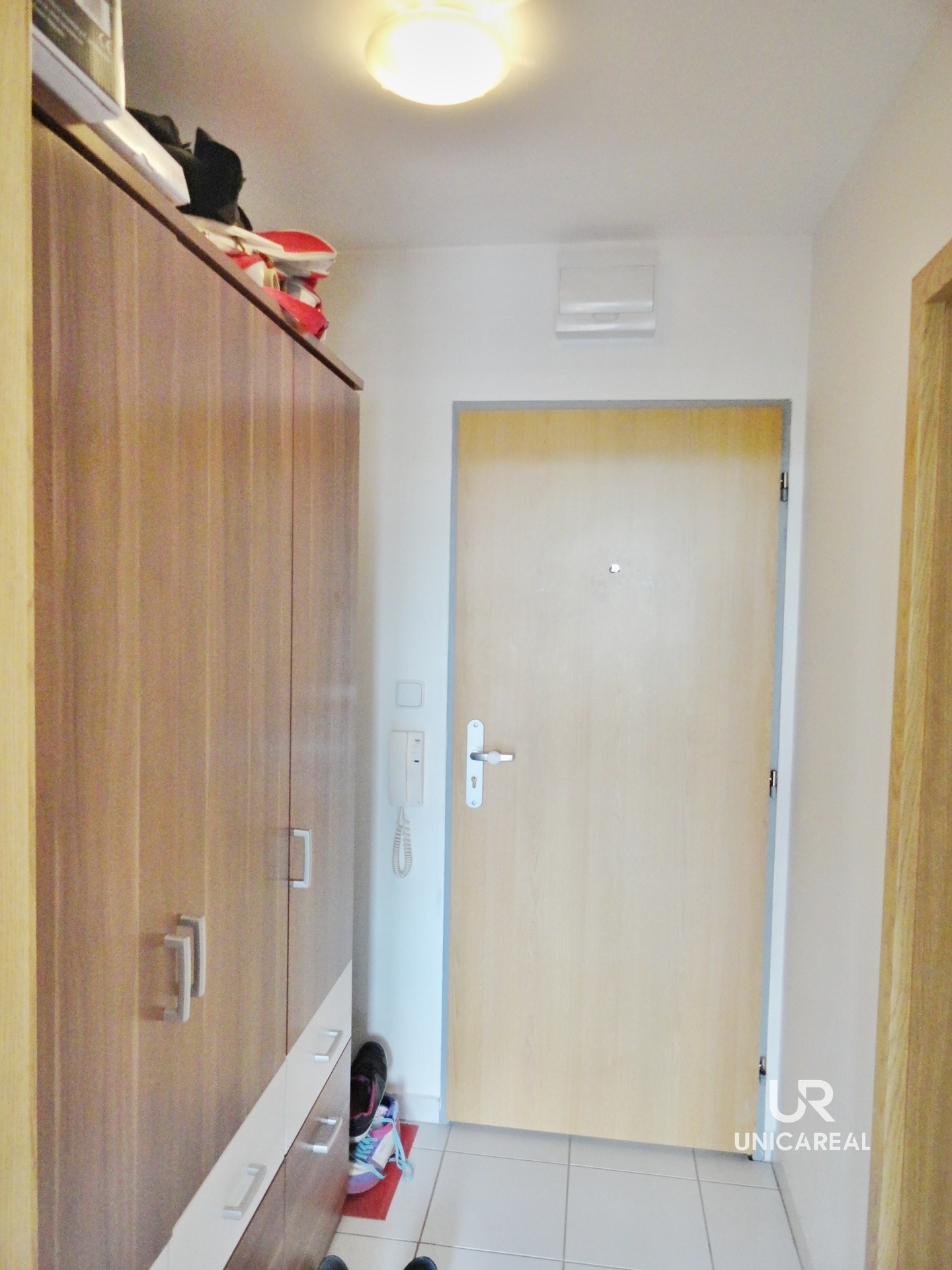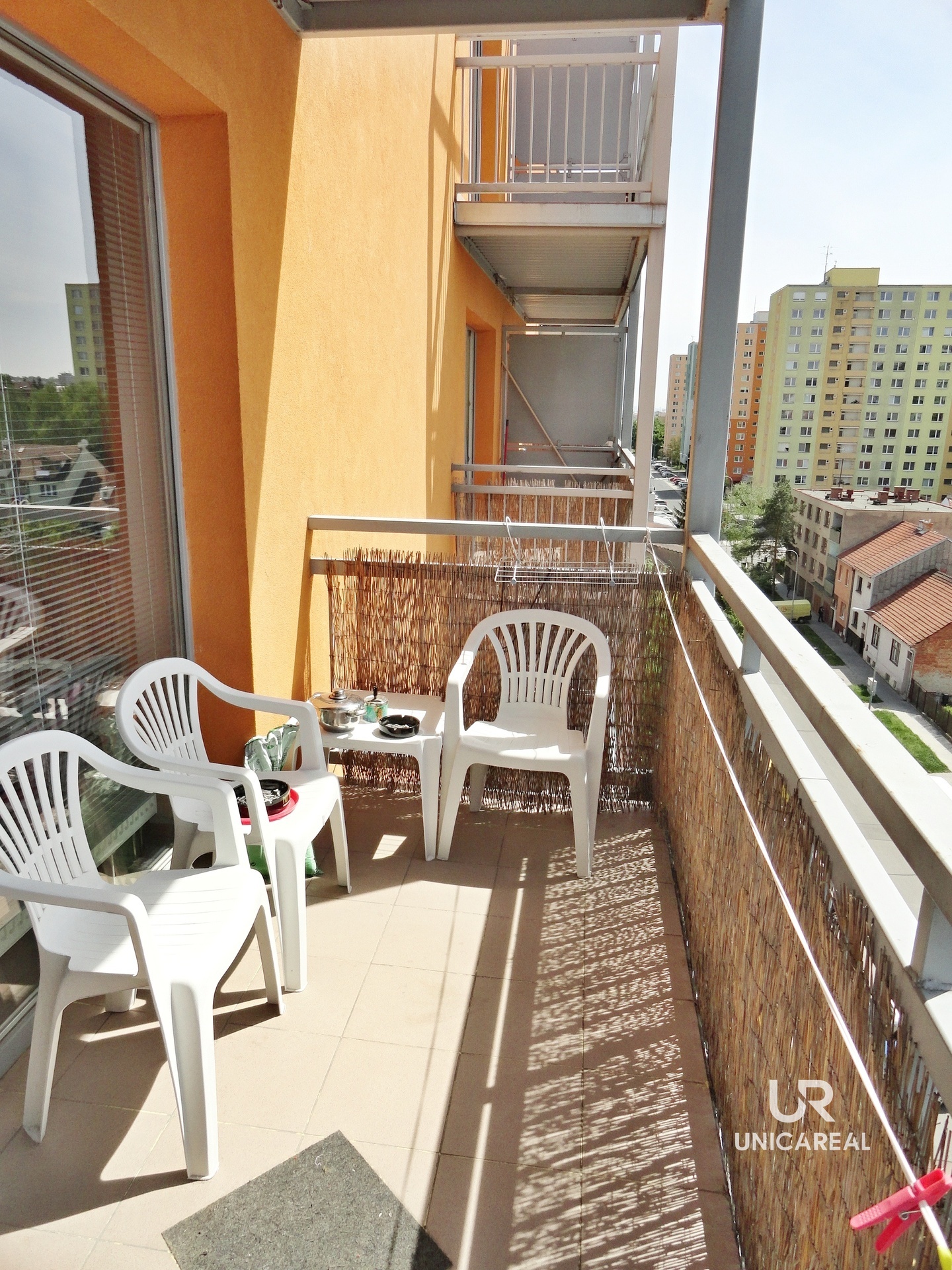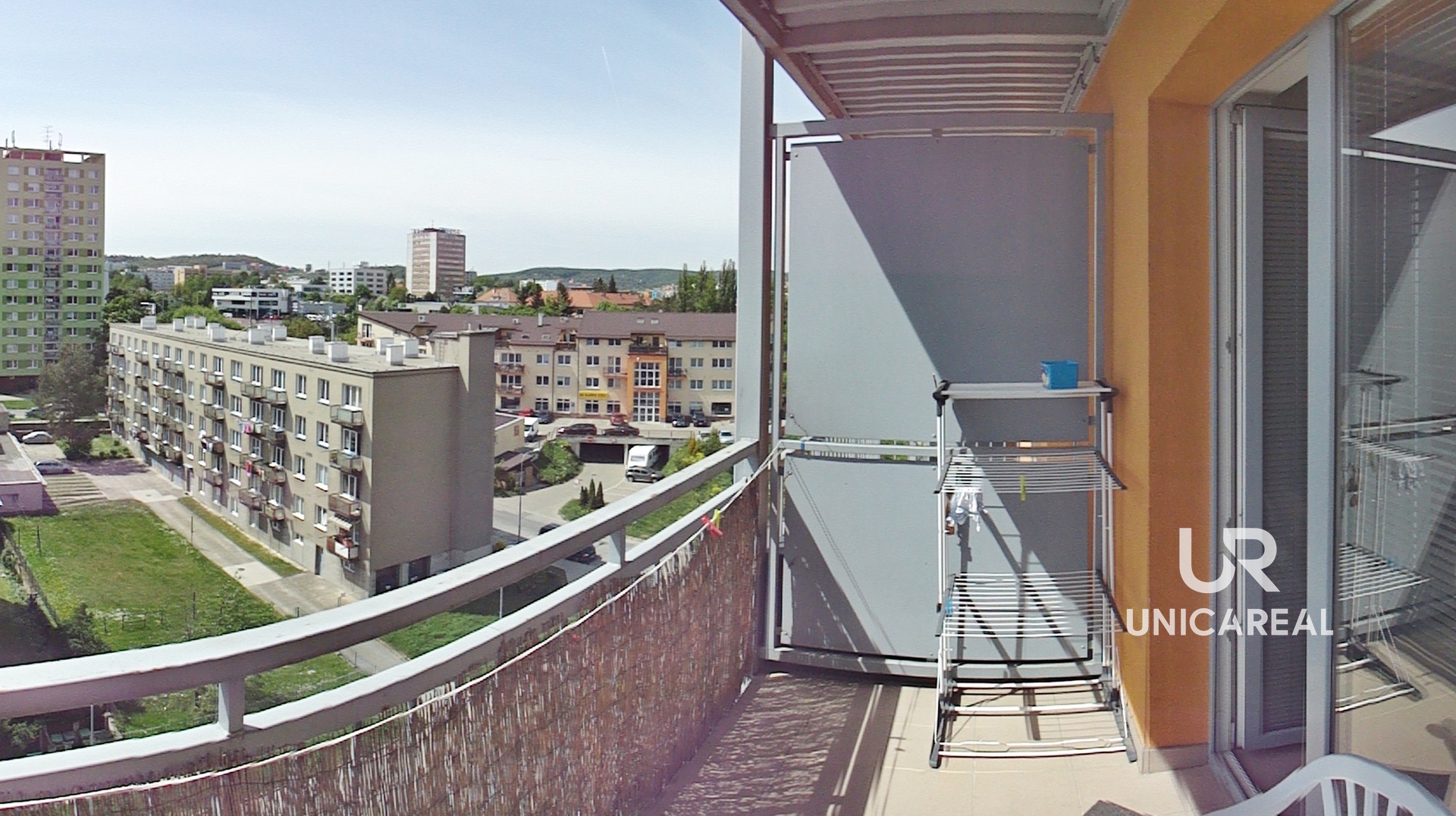 Světlý, západně orientovaný byt s pěkným výhledem je situovaný v 6. NP domu s výtahem a má celkovou užitnou plochu 34 m2 + 5 m2 balkon + 5 m2 zděný uzamykatelný sklep. Byt se nabízí částečně zařízený: kuchyňská linka včetně elektrické varné desky. Majitelé jsou ochotni v případě zájmu koupit novou lednici. Jinak je byt nezařízen.