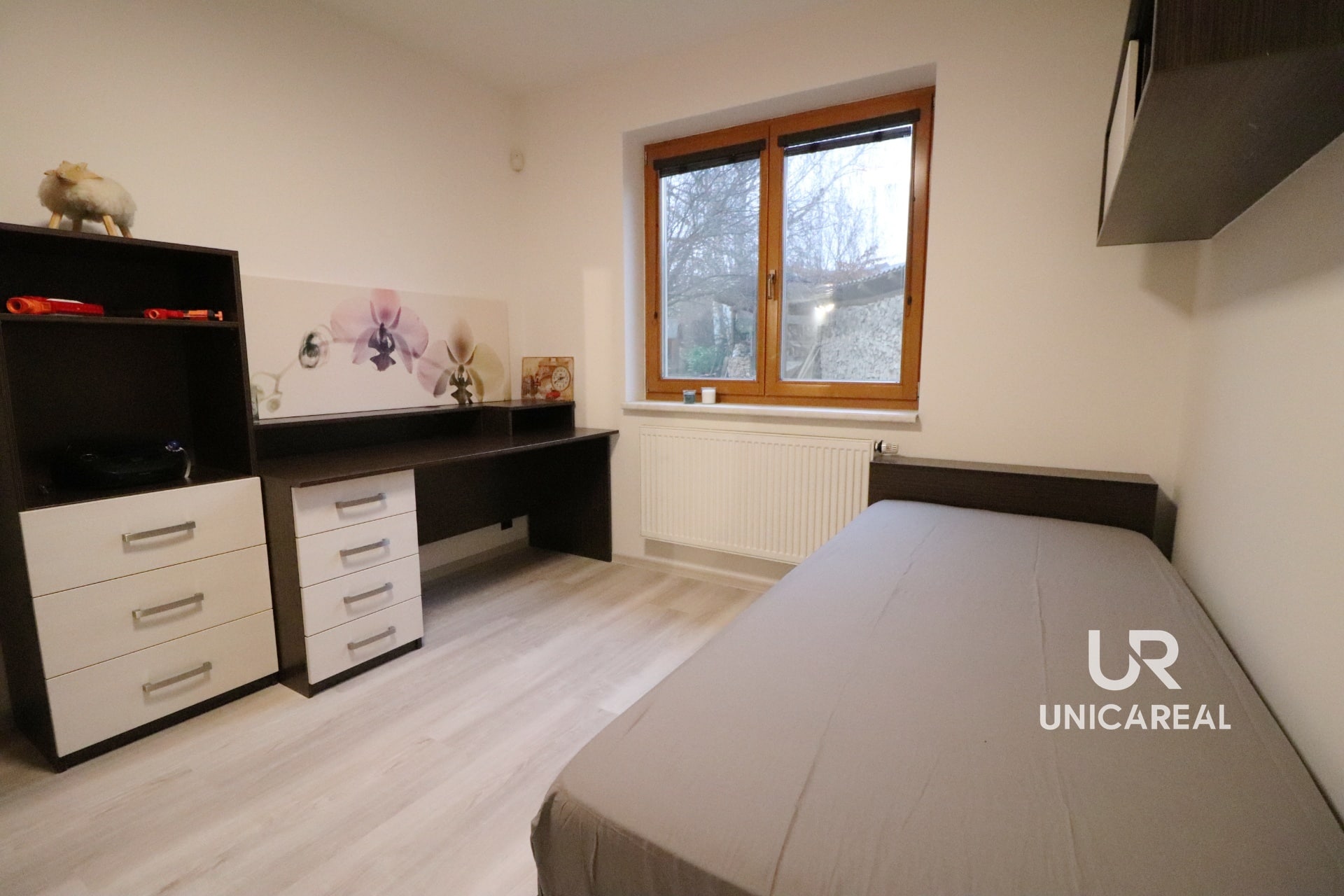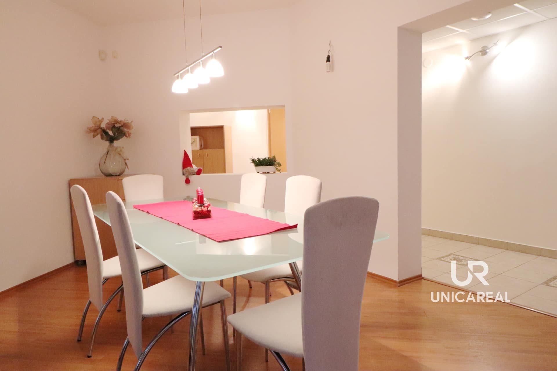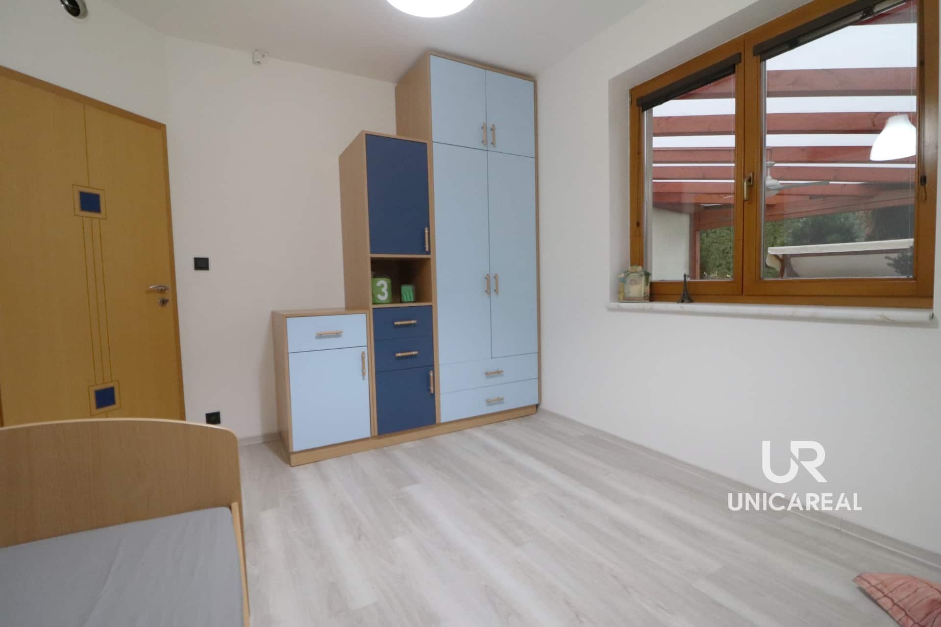 Dispozice – zádveří s věšákovou stěnou a botníkem, samostatné wc, obývací pokoj s kuchyňským a jídelním koutem 50 m2, ložnice 12 m2 s vestavnou šatní skříní , dva dětské pokoje , koupelna 6 m2, technická místnost, vstup do garáže.